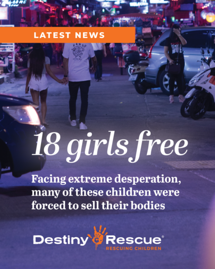 10-year-old Olivia had been acting strangely for months. She seemed angry and withdrawn, and her teacher grew concerned. One day, the fire department had to rescue the young child after she climbed a nearby electrical tower, showing a disturbing lack of concern for her own well-being. Her teacher patiently earned Olivia’s trust until one day, when Olivia revealed that her father had been sexually abusing her. Confused and in pain, Olivia had begun acting out in a silent cry for help. When her mother was told, she dismissed Oliva, telling the teacher that the child liked to make things up. But Olivia’s teacher took the case to the authorities anyway. The ensuing investigation, supported by Destiny Rescue, revealed tragic evidence of little Olivia’s sexual abuse and neglect. Olivia’s father was arrested, and she was taken to a shelter. She has a long road ahead of her, but loving caseworkers and mental health professionals are on her side, helping her overcome.